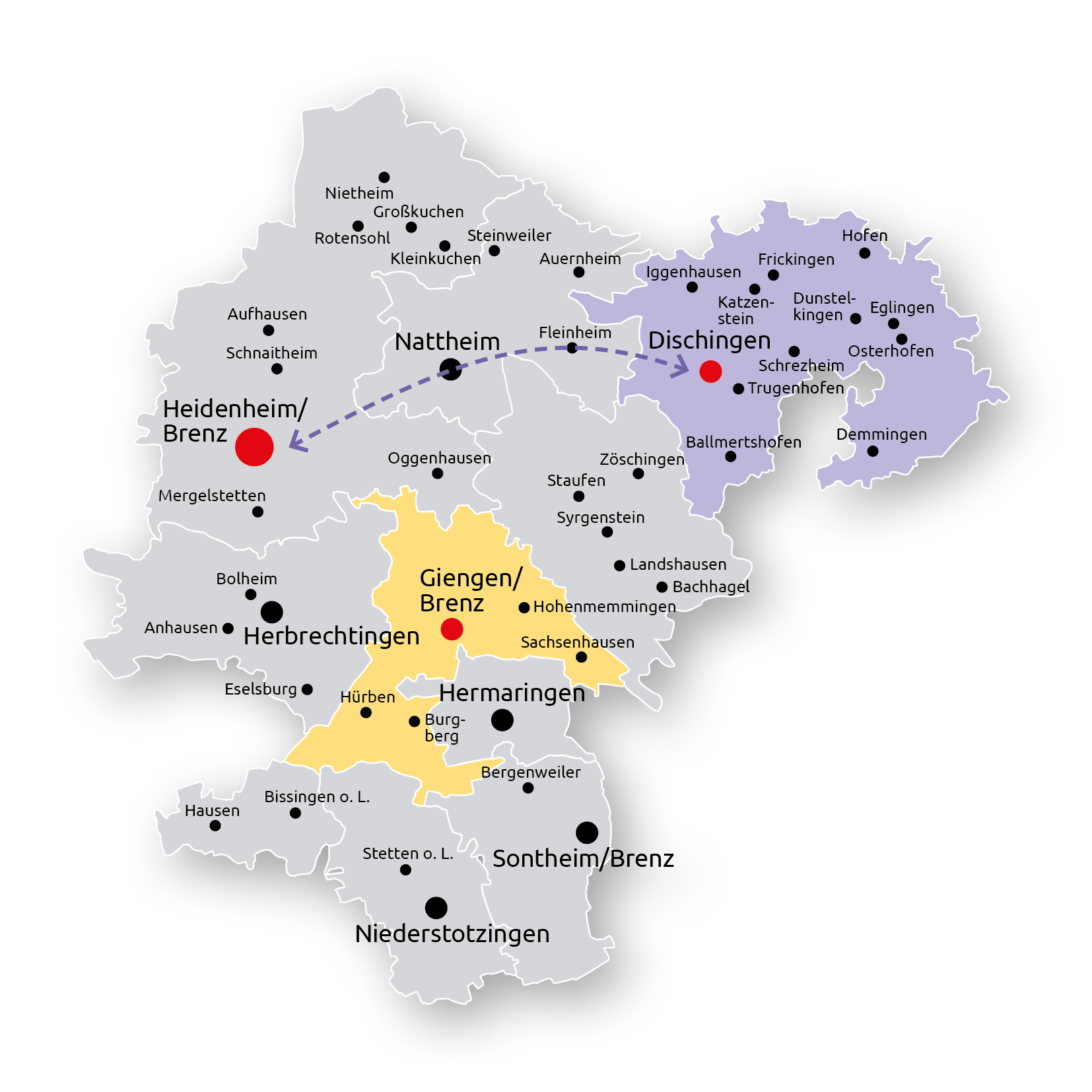 „Landkreis Heidenheim mobil“ ist ein gemeinsames Projekt des Landkreises Heidenheim, des Heidenheimer Tarifverbunds (htv) und der Pilotkommunen Giengen an der Brenz und Dischingen.