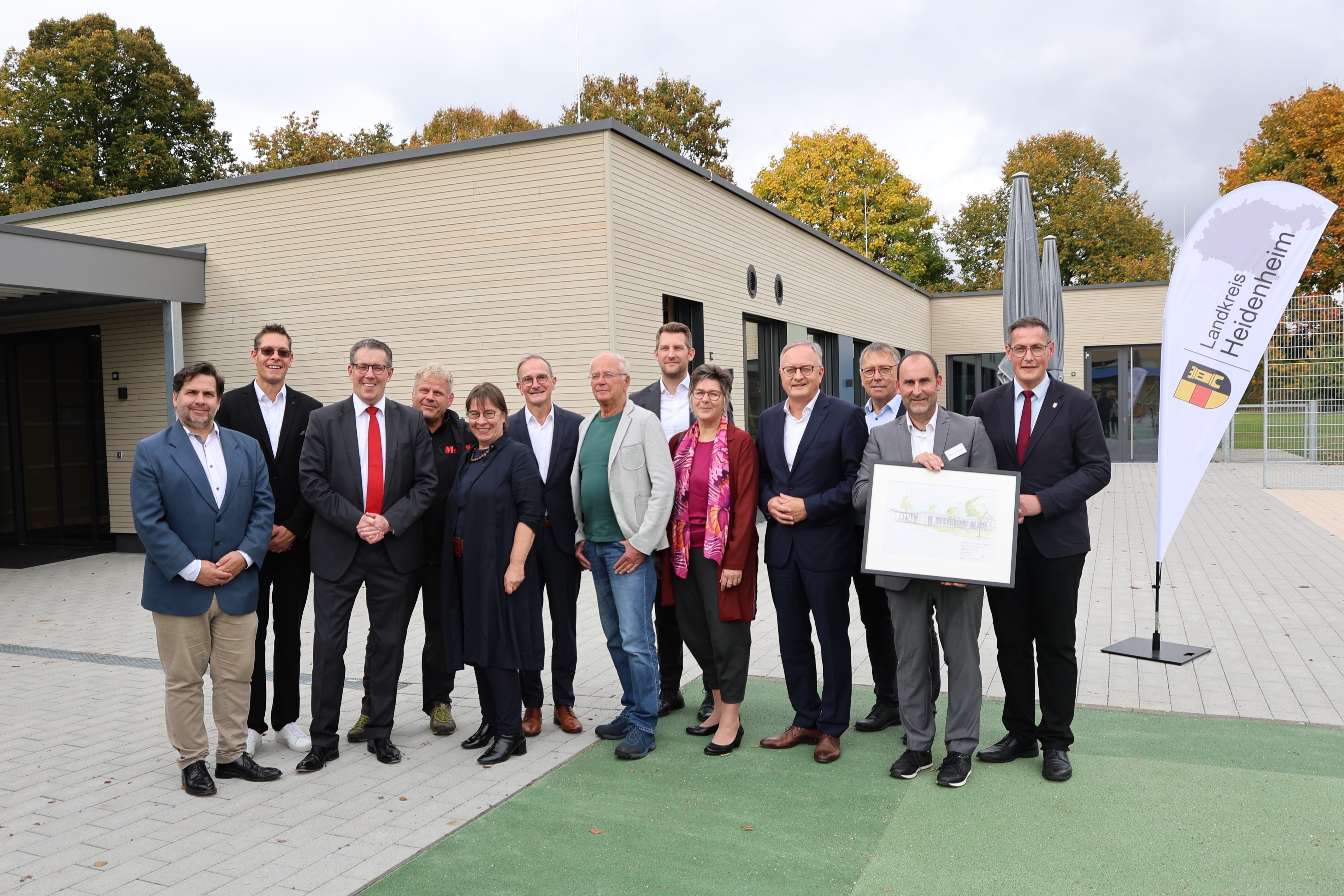 Nach nur rund siebenmonatiger Bauzeit wurde am Donnerstag, 9. Oktober 2025, der Erweiterungsbau der Pistorius-Schule in Herbrechtingen offiziell eingeweiht. An der Feier nahmen neben Landrat Peter Polta weitere Vertreter aus Politik, Schule und Verwaltung teil – darunter der Landtagsabgeordnete Andreas Stoch, Mitglieder des Kreistags, Schulamtsleiter Jürgen Henzler, Herbrechtingens Bürgermeister Daniel Vogt sowie Schulleiter Wieland Fischer. Uwe Maier, Geschäftsführer des Generalunternehmers Uwe Maier Holzbau GmbH, und Architekt Tjark-Marten Apetz von WOLF Planung, übergaben dabei symbolisch den Schlüssel.
